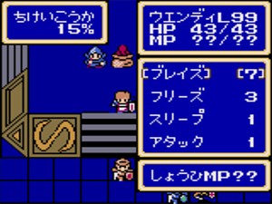 | 7 | 0 | 敵単体に約27ダメージ。エフェクト無し。 MPが235以上無いと唱えられない。(MP消費自体は無い) |