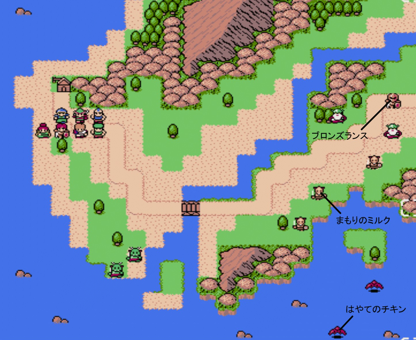 Battle.7![]() 【勝利条件:敵全てを撃破】敵総数:12 ラットマン(HP18)×2 ラットフライ(HP18)×3 ダークメイジ(HP20/ブレイズ2)×2 ブラスローダー(HP23/射程2)×2 ヘルソルジャー(HP23)×2 プリースト(HP26/ヒール2)×1 プリーストはダークメイジの上位に見えるが使用するのは回復魔法のみ。ブラスローダーが落とす「力のワイン」は何度でも入手可能。(設定ミス?) ステージクリア後、レンジャーのストックと僧侶のメイフェアが加入。 |