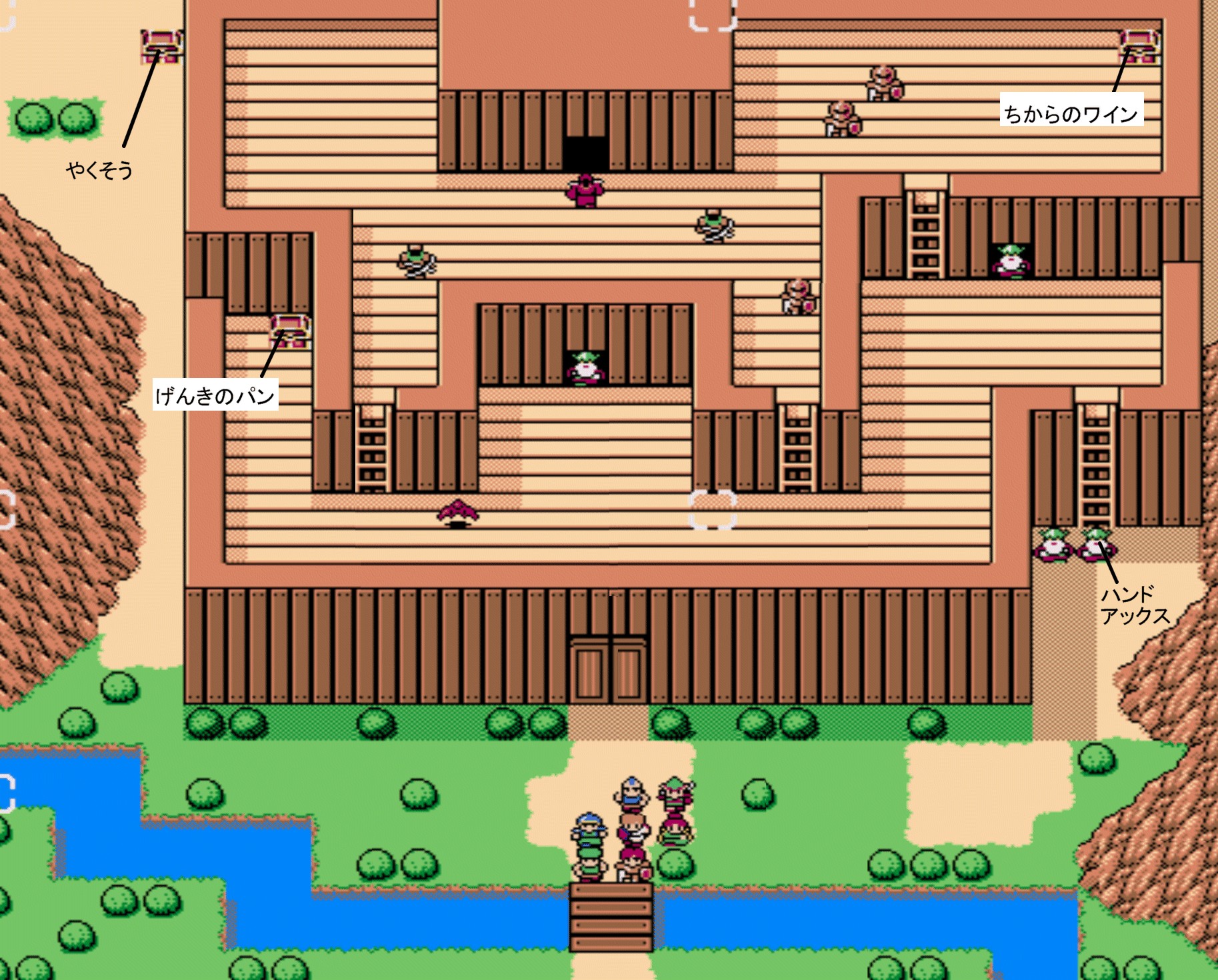 MAP画像はクリックで拡大。宝箱や敵から入手するアイテムも表示しておりますが、薬草等の安価アイテムは表記していない場合があります。| ↓第一章 2軍部隊の遠征 |