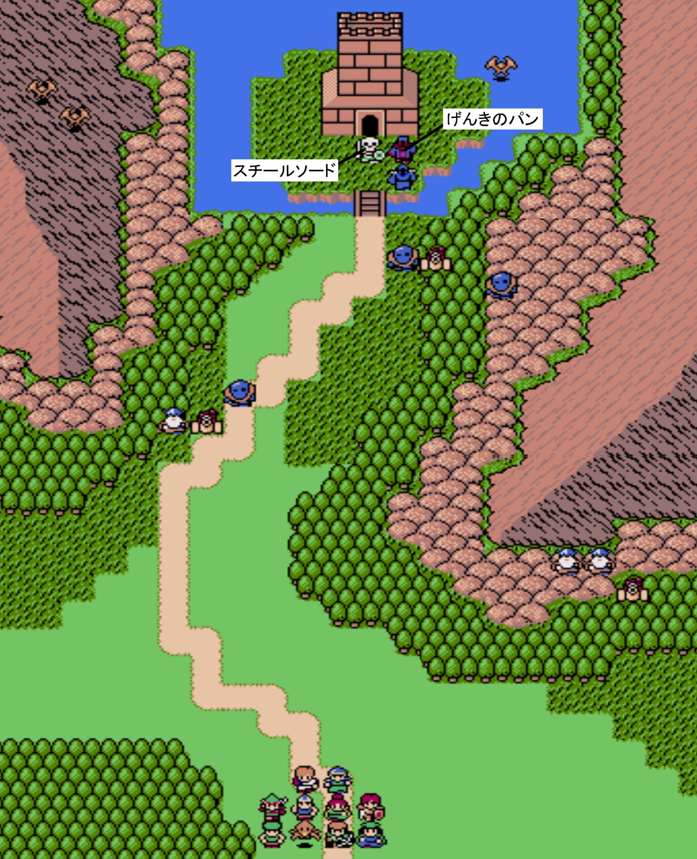 Battle.3![]() 【勝利条件:サイプレスナイト撃破】敵総数:10 ゴブリン(HP9)×2 おおこうもり(HP12)×2 スケイブン(HP13)×3 ドワーフ(HP15)×2 サイプレスナイト(HP15)×1 おおこうもりが落とす「はやてのチキン」はリターンして再度倒す事で、何度でも入手可能。(設定ミス?) |
