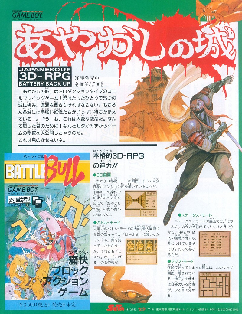本作はGBでは1990年発売の珍しい3DダンジョンRPGです。しかも和風と特徴は立っている作品です。