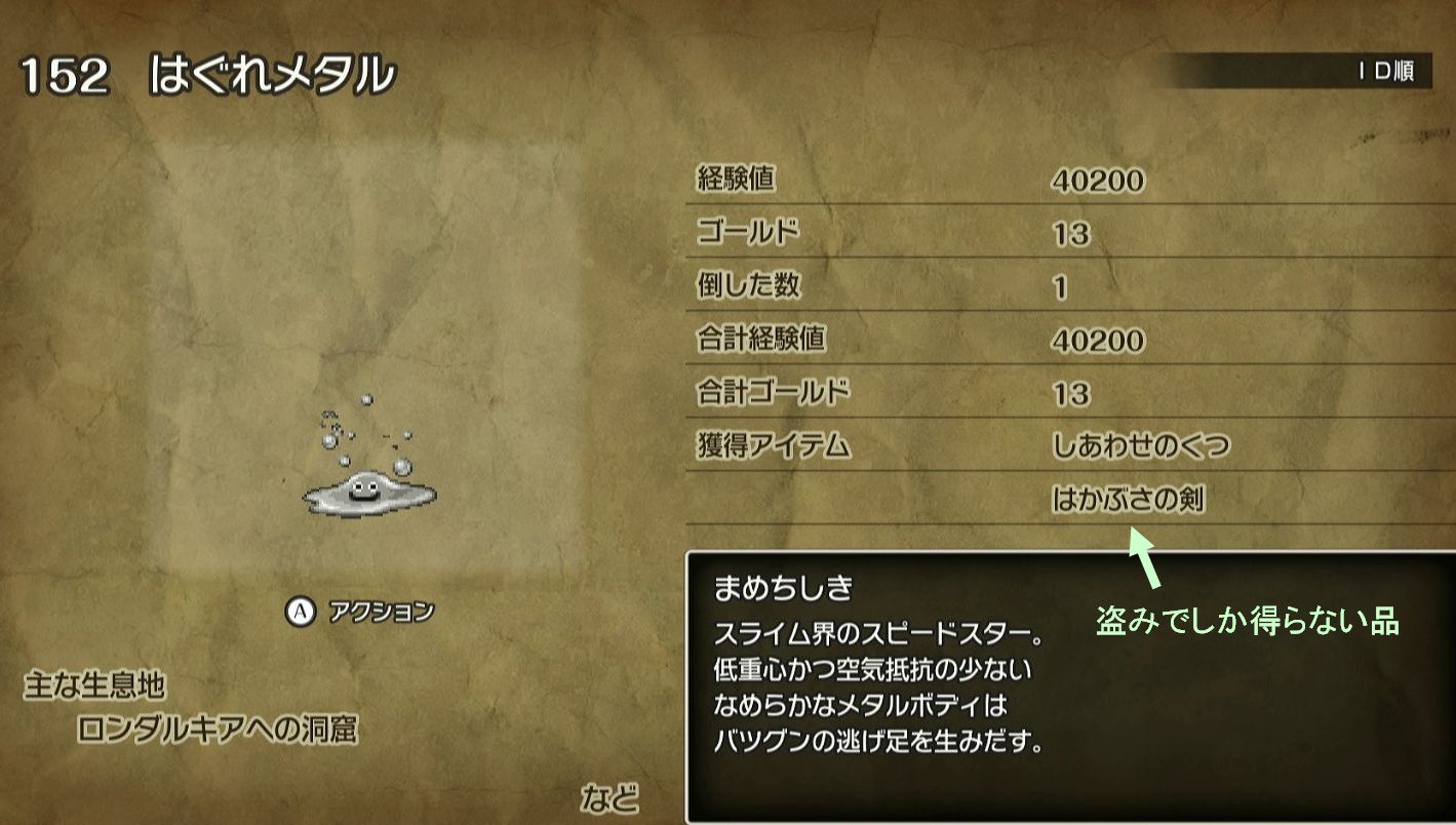 | 【後半-ロンダルキアへの洞窟4-5F】 洞窟は一旦抜けてロンダルキアの祠をブックマークしておくとやりやすい。 はぐれメタルの群れが出現し、他ザコは山彦ギガデインで一掃可能で経験値も十分美味しいので狩り易い。 はぐメタ相手にはサマル兄妹がそれぞれメタルウィング、ぬすっと刈りするとはかぶさの剣も狙える。 |