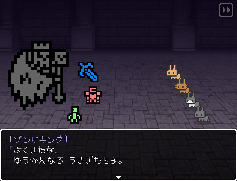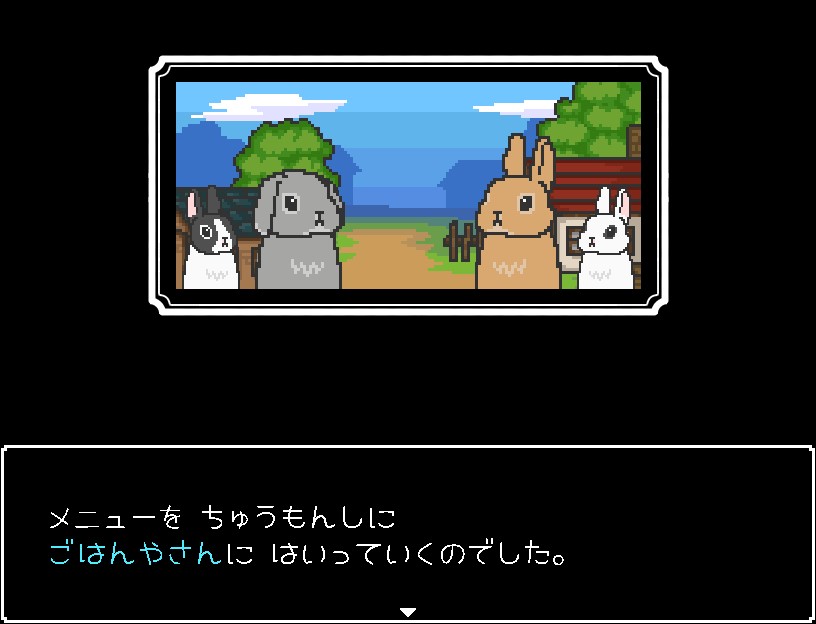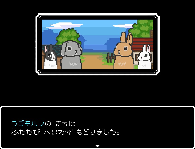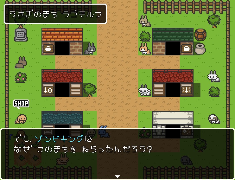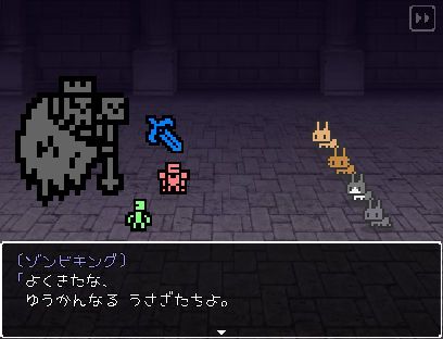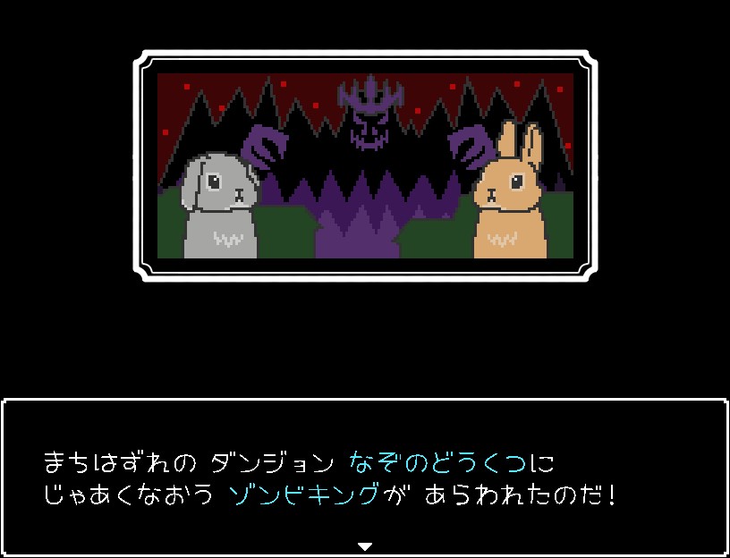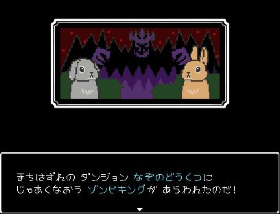 RPGツクールで制作された、うさぎが戦うRPG。ストーリーは「突如ゾンビキングという魔物の王が現れ、世界は暗雲に包まれた。平和を取り戻すべく、10匹のうさぎが立ち上がった!」という王道な内容です。
