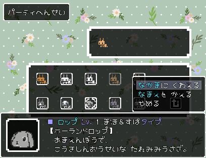 10匹のうさから好きな子を4匹選んでパーティを組めます。