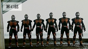![]() ライオトルーパー初登場。人数といい、初代ライダーに登場した「ショッカーライダー」を彷彿とさせる(´▽`;) |