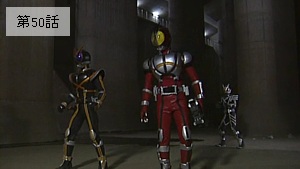![]() 巧「俺は戦う、人間として、ファイズとして」 立ち直った巧の変身。貴重なライダー3人同時戦闘でもある。 |
