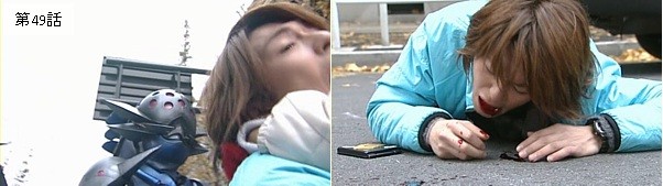 ![]() 真司「同じかよ…どうやっても結局…俺は…優衣ちゃん…ごめん…」 優衣を救う為に戦うと決めたハズなのに、他のライダーを殺す事は出来なかった。かつての蓮同様、だれかの命を奪う事と優衣を天秤にかける事に苦悩する。 |