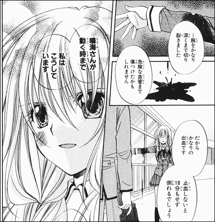 カノンの前でリストカットして足止めの時間を稼ぐ