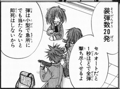 カノンは「不意打ちに対して無意識に100%反射行動を起こせる」「5階から飛び降りても平気なくらい強靭な身体能力」等のチート能力の持ち主で、まともに麻酔弾を当てるのが難しい。しかし「ブレードチルドレン以外の人間は絶対に殺さない」というカノン自身が課した制限を利用して、ブレチル以外が手榴弾を投げつつ特攻をかける事で「カノンは敵の攻撃を凌ぎつつ、その敵を手榴弾から守らなければいけない」状況を作る等、カノンがもつ制限をフルに活かした戦略が面白い。