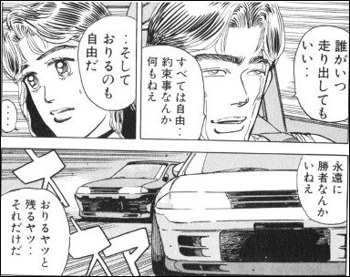 レベルの違うブラックバードを無理に追ってエンジンブローした原田の車を見て北見さんが言う言葉。