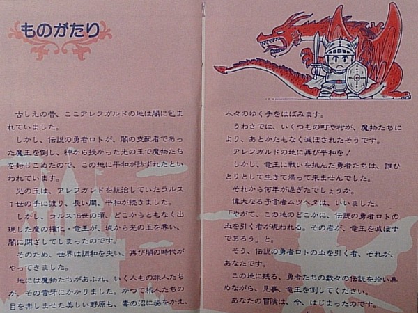 かつて世界を救った勇者「ロト」の子孫である主人公が囚われの姫を救い、竜王を倒し、世界に平和を取り戻す。というお話。