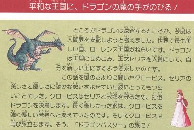 親衛隊長の息子クロービスが憧れる姫セリアをドラゴンから救うべく戦うという王道すぎる程に王道なストーリー。