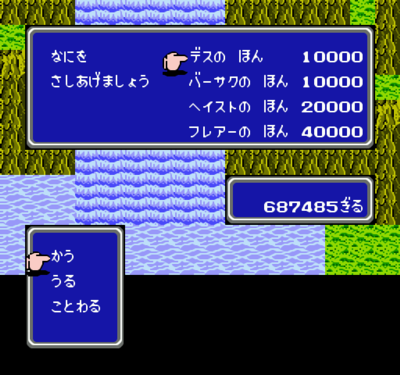 大金を準備して行く事ができれば、序盤から「とうぞくのこて、ホーリーのほん」等の便利品が購入可能。