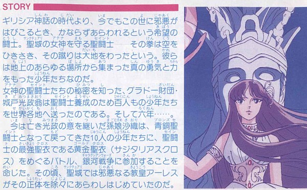 人気漫画(アニメ)である「聖闘士星矢」を原作としたゲーム。一応12宮編まで収録されている。キャラゲーながら横スクロールのアクションパートとドラクエのような1vs1のターン制バトルを組み合わせた意欲作となっている。顔・全身グラフィックも多く描かれており、必殺技を放った際はエフェクトも表示される。敵を倒して経験値を溜め、自由に能力値を強化していく育成要素も楽しめる。