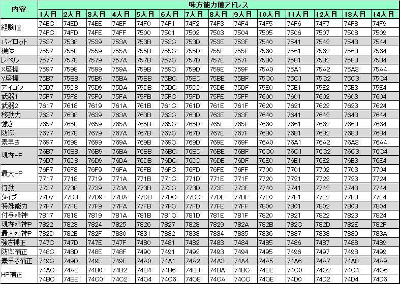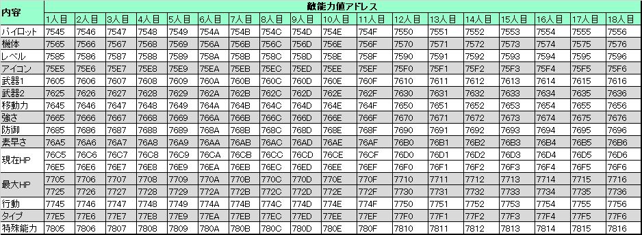 | 付与精神 | 7817:** | 付与されている精神 01:閃き 02:必殺 04:熱血 08:気合 10:我慢 20:直感 40:疾風 80:加速 フルコースは**=47h |
