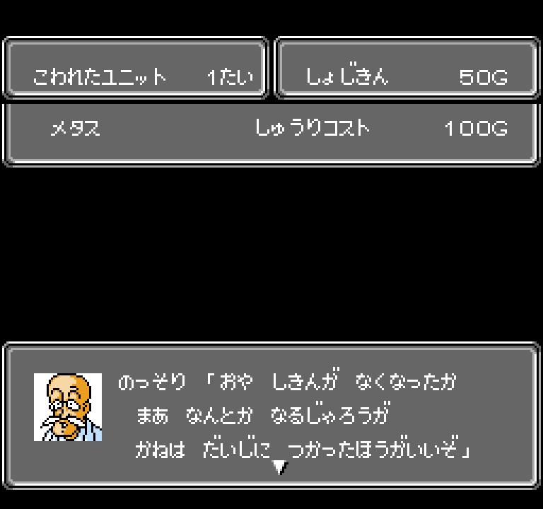 - 修理装置の回復量は修理をする側の最大HPの半分。つまり回復役のLv上げも必須。