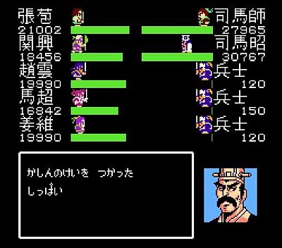複雑怪奇な三国志のストーリーを描写しきれていない面はあるものの、FC-RPGとしてみれば描写面は多い。