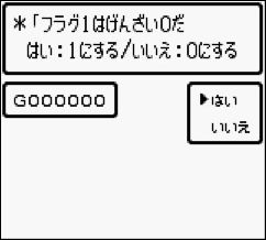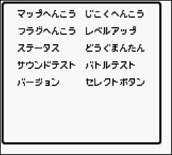- ゴールドは任意の番号を3桁設定可能で、004にして「Aで決定(Lvup音が鳴り画面が白くなる) → Bを一回押す → Aを押す」の手順で下図デバッグリストが表示。