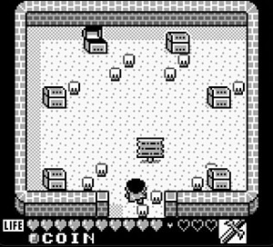 ラスボスの部屋に続く梯子の上端で、素早く左・上と押すと、本来のフロアでなく下図の「Dの部屋」に行ける。