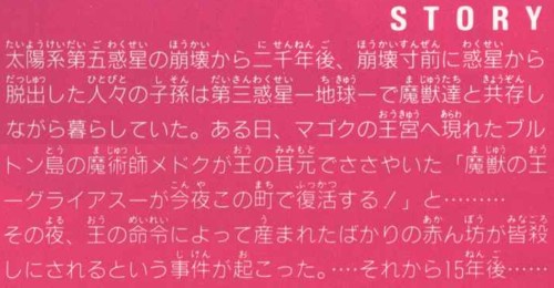 説明書、及び作中のオープニングで語られる内容では、前作の舞台だった第五惑星は滅び、最終地点だった第三惑星テラに人類は移住して暮らしているという背景です。前作主人公のエルは涙を飲んで自身の正義を貫いたガイアマイスター達を倒し、星の命であるオリハルコンを取り戻したのに、結局星を救う事が出来なかったのか…。人類や魔獣は結局結束は出来なかったのかもしれない。人の業を感じる(*´Д`)