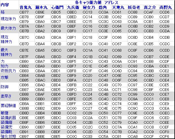| 習得法術 | CB2E:yy ~ CB39:yy |
