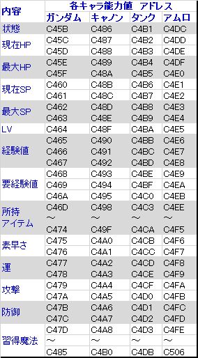 | 要経験値 | C468:00 C469:00 C46A:00 |