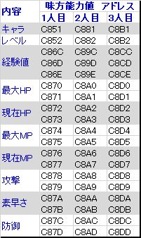 | 経験値 | C86C:7F C86D:96 C86E:98 |