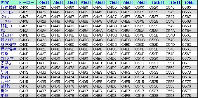 | 行動状態 | C400:** | 80:待機状態、C0:行動済 |