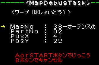 場所、フロア、座標を選択してワープ可能。デバッグコードONのままだとワープ出来ないので注意。