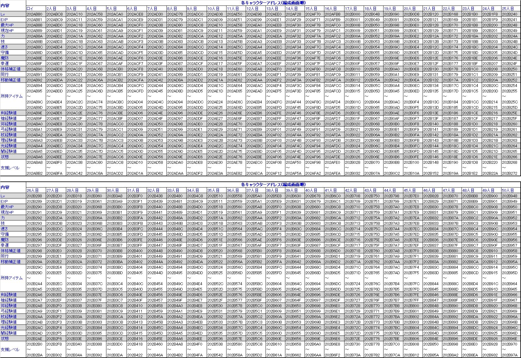 | 斧経験値 | 202ABA0:FF | |