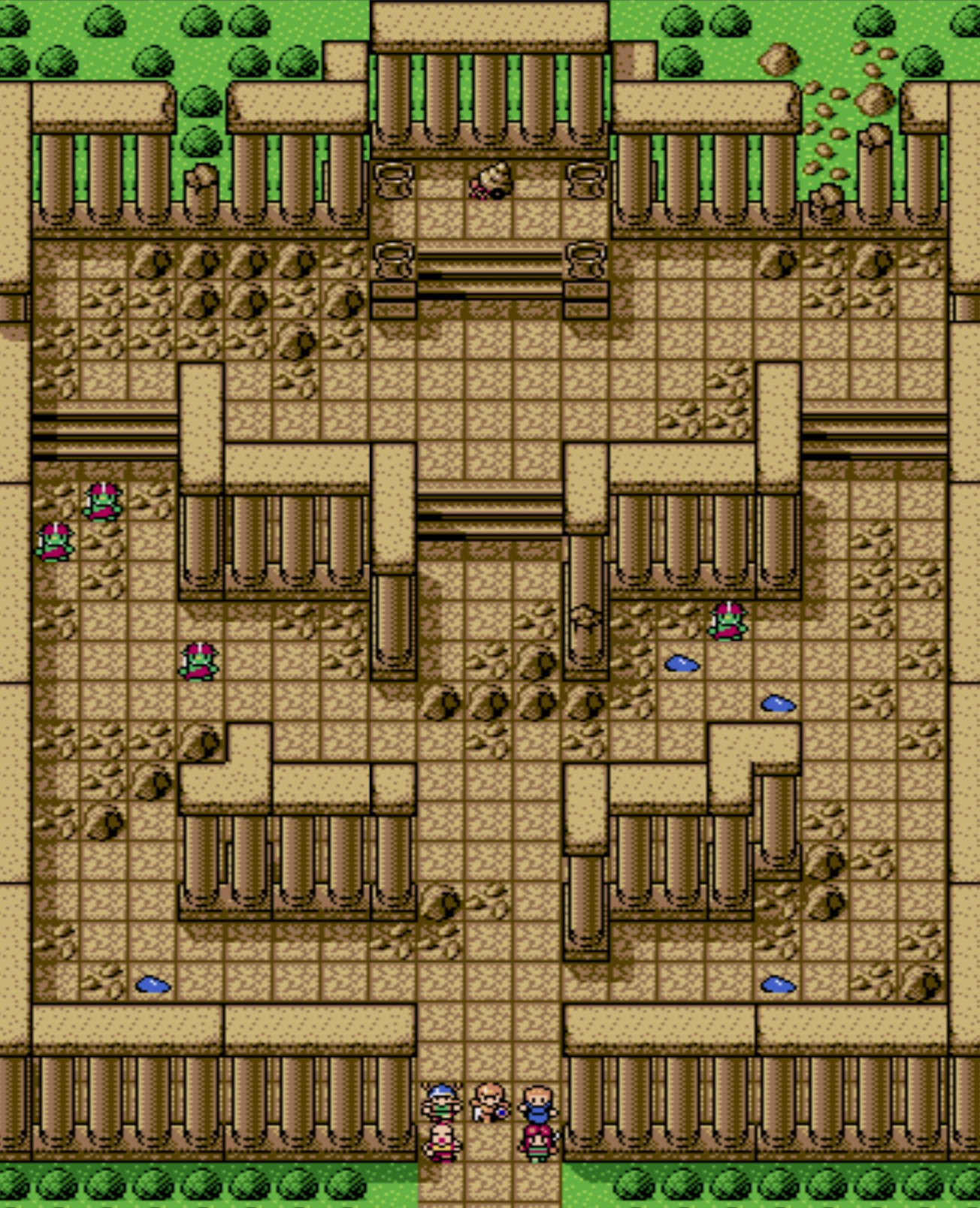 Battle.1![]() 【勝利条件:敵全てを撃破】敵総数:8 ペースト(HP8)×4 ゴブリン(HP10)×4 いきなり主人公不在でリターン不可。代わりにミードが天使の羽を持っており、町に戻れば店から天使の羽の購入も可能。ココはザコ敵しかいない為、さほど苦労しない。 ココではミードが暫定リーダー扱いの為、ミードがやられると全滅扱いとなる。 ステージクリア後、「剣士のイアン(Lv1)」が加入。 |