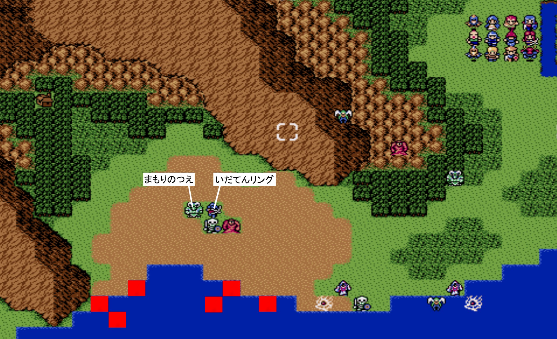 Battle.13![]() 【勝利条件:ボウライダーを撃破】敵総数:13+(増援6) ウィッチ(HP28/ブレイズ3)×2 ブルー(HP35/ヒール3/ヘルブラスト1)×2 ハーピィ(HP27/飛行/毒攻撃)×2 スケルトン(HP27)×2 ゴーレム(HP22)×2 ミストデーモン(HP35/飛行/ブレイズ2)×2 ボウライダー(HP38/射程3)×1 テンタクルレッグ(HP37/浅瀬移動可/毒攻撃)×(増援4) テンタクルアーム(HP42/浅瀬移動可/射程2)×(増援2) 新顔「ミストデーモン」はブレイズ2使い。ウィッチも含めて注意。砂地辺りまで進軍するとイベント発生。砂地が浅瀬になり、増援が出現する。浅瀬は実質砂地のままと思えば良いが、テンタクル系は浅瀬も進入可な事に注意。 |