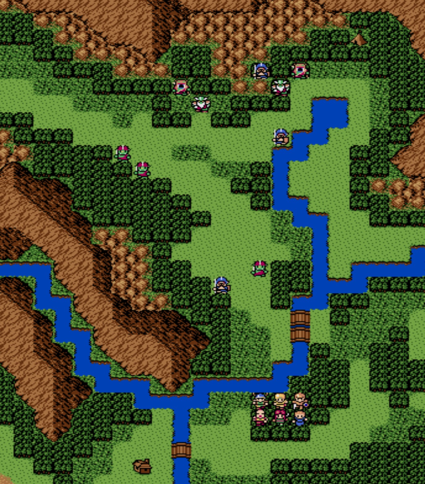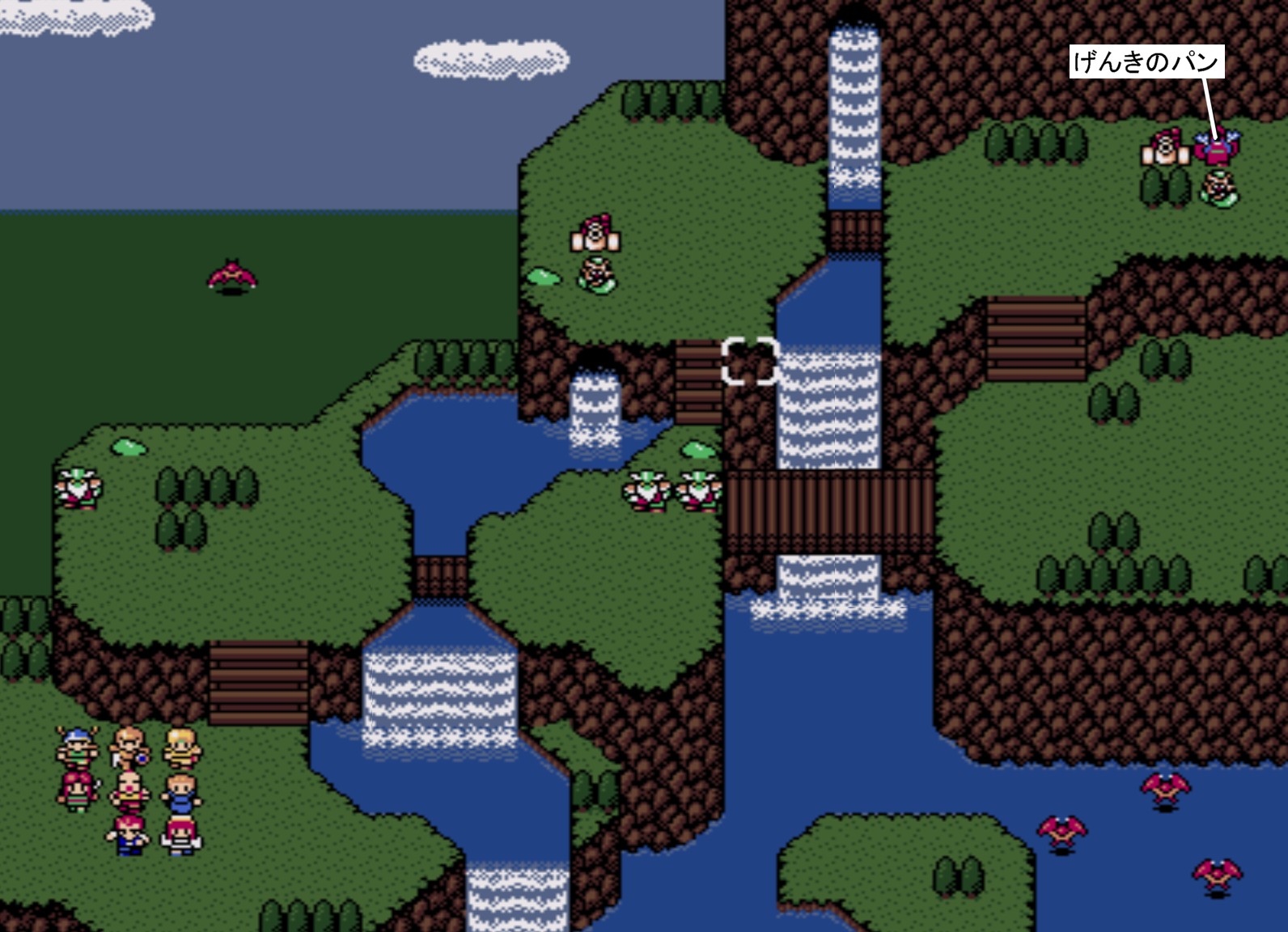Battle.6![]() 【勝利条件:ダークメイジを撃破】敵総数:15 ダークドワーフ(HP13)×3 オオコウモリ(HP16/飛行/睡眠攻撃)×4 グリーンペースト(HP15/毒攻撃)×3 ウォーム(HP16/毒攻撃)×2 ブラスローダー(HP18/射程2)×2 ダークメイジ(HP22/ブレイズ2)×1 橋の関係でMAPが狭い。ダークメイジは十字範囲のブレイズ2を使う為、味方同士隣接して待機しない様に。先ほど加入したルブランは最終的には最強クラスに成長する。ここで意識的にLv上げをしてやると後がラクになる。 ステージクリア後、鳥人のキッド(Lv8)が加入。 |