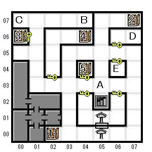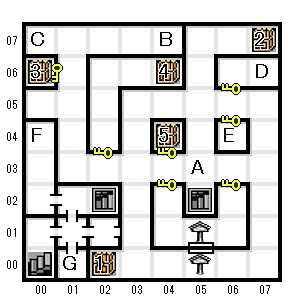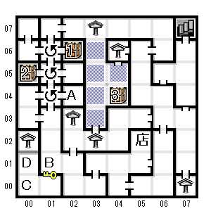クリアに至るまでの簡単なフローチャートです。黒ハッチング部分はその時点では行けないエリアです。攻略内容にはクリアに関係しないイベントも含みます。魔導塔-1F![]() |