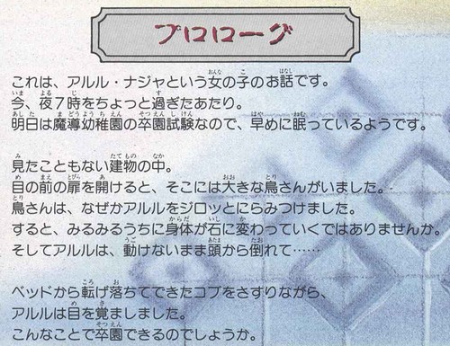 人気落ち物パズルゲーム「ぷよぷよ」のスピンオフRPG。主人公の少女「アルル・ナジャ」は塔に隠された3つの魔導球を探しだすストーリーとなっている。