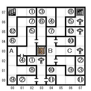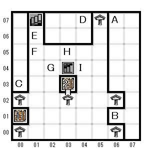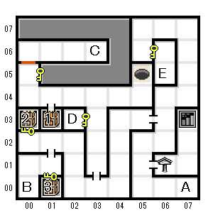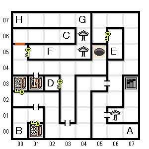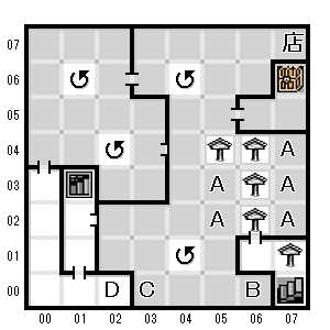 - Bに2度訪れるとドラコと戦闘。撃破後、[X3,Y0]の赤壁が除去される