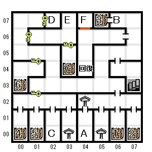 - このフロアは全座標が壁で埋められており、上図で示された壁以外はぶつかると破壊出来る。(破壊した壁はセーブ&ロードで戻る)