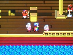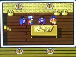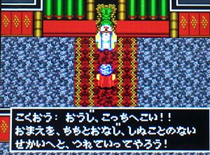 撃破する事が出来れば魔人抜きのまま第2章に突入し、下図のように姫がついてきたままになる。グラフィックがバグり、甲板では姫が2人居たり船室に降りると姫が船長に変わる等おかしくなる。このまま進めても第3章までは進める事が出来るが、魔人がいない為ラーグの呪文が使えず、マハムードを脱出する事が出来なくなり、クリア不能になる。