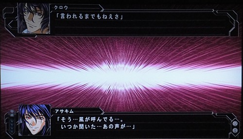 アサキム最後のセリフ。明らかにサイバスターのテーマ曲「熱風!疾風!サイバスター」の歌詞から来てますが、この人、結局何の関係もなかったからなぁ…。管理人が魔装機神ファンである事もあり、勝手に過剰に期待しすぎたのもありますが…ゲームだけでは見えない裏設定とかあったりするのかな?