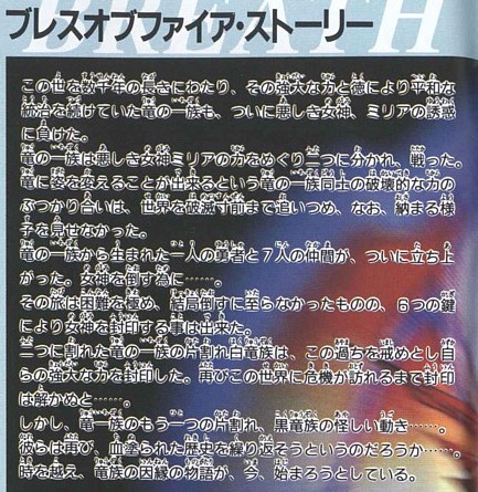 後にブレスシリーズとして有名になる第一作目。「有翼人や狼人といった非人間キャラが多く登場し、主人公は竜に変身出来る」というのがブレスシリーズの根幹特徴となっている。