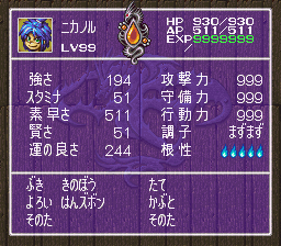どちらも上がってしまえば下がらない模様。(但しアラビアバーやビッア等を利用すると設定された値になるので結果的に下がる事もある) - 装備のROMデータに含まれるのは「名前、価格、説明文、種別、属性、耐性、攻撃力・防御力、装備可能者、攻撃対象(単体・全体・2回攻撃)」だが、