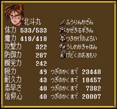 術はLv上げで習得していくというシンプルな内容ではなく、各地に点在している神と契約する事で可能になる「神降ろし」で発動する。能力値は取った戦闘行動によって伸びる内容が多少異なる等、やや特殊なシステムだが根っこは王道で遊びやすい内容となっている。