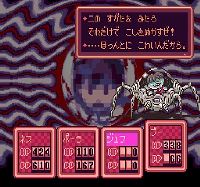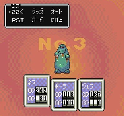 いざ戦闘に入るとドラムロール式のHP表記や、数多くのユニークな状態異常が目を引く。ネス達の特長も立っており、皆それぞれに役割が立っているのも良く出来ている。