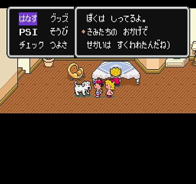 とはいえ、ギーグ(とポーキー)が起こすハズだった災いを事前に防いだ形となっているので、世界中の人はネス達の偉業は分からないし知る事もないんですよね…報われないけど、身近な人達やわんこだけは知ってくれてたから満足ヽ(*'▽')ノ