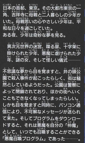 平和な現代社会に、突如として悪魔が出現するようになった状況から始まり、世界は混沌と滅びに向かって進んでいくサイバーな世界観。