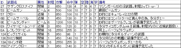 - 現行スパロボの様な、武器のクリティカル補正値は存在しない。(全武器のROMデータを確認済)