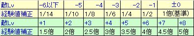 【戦闘関連】- 敵とのLv差によって獲得経験値に下表の倍率が掛かる。