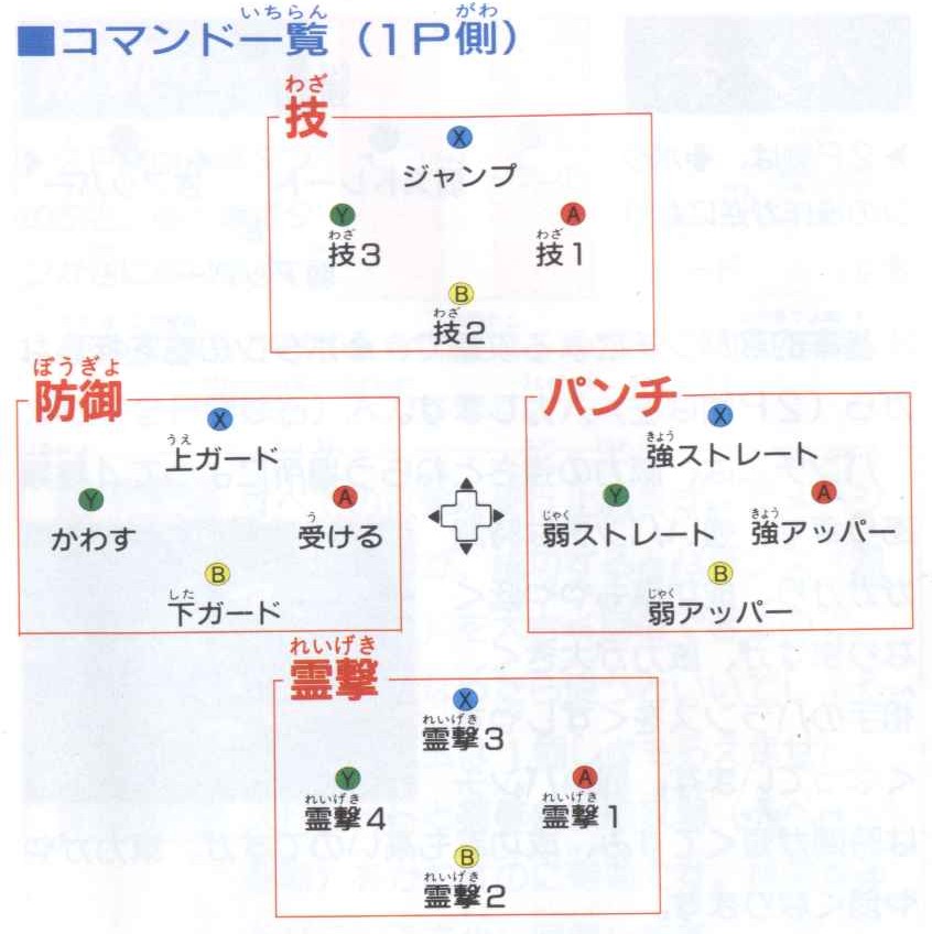 - 接触、パンチ、地上属性の攻撃はジャンプで回避可能。この場合はアドバンテージを取った事になり、霊気玉の大半を得る事が出来る。飛び、伸び霊撃が来ない状況なら選択肢に入れよう。