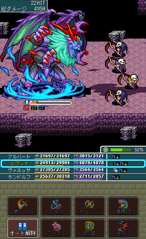 前述した通り戦闘速度の3倍加速やエフェクトカットも出来てオート戦闘で十分勝ち進めるので進行が阻まれる感がなく、サクサク進める。