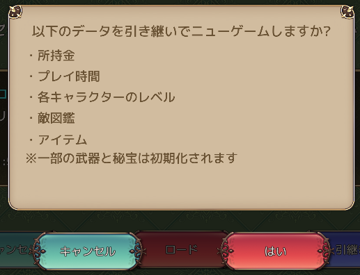 ちなみに強くてニューゲームは可能です。ありがたみは大分薄いですが、ストーリーを再度追いたい人には良いですね。
